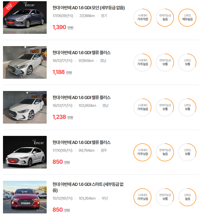 - 엔카: 다양한 차량 매물과 직관적인 검색 기능으로 원하는 차량을 쉽게 찾을 수 있습니다.