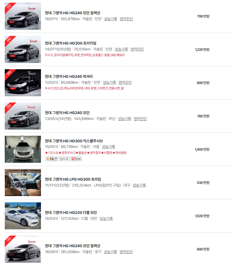 그랜저 IG, HG, 중고차 가격, 연식별 시세, 차량 유지비 등의 정보를 이번 포스팅에서 다루었습니다. 이 글이 그랜저 IG, HG 중고차를 고려하시는 데 도움이 되었길 바랍니다.
