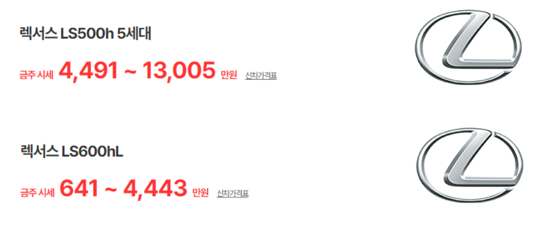 렉서스 LS 하이브리드 중고차 가격