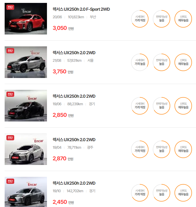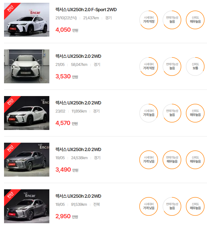 이와 함께, 렉서스 UX250h 하이브리드에 관심이 있다면 아래 차량도 비교해보세요.