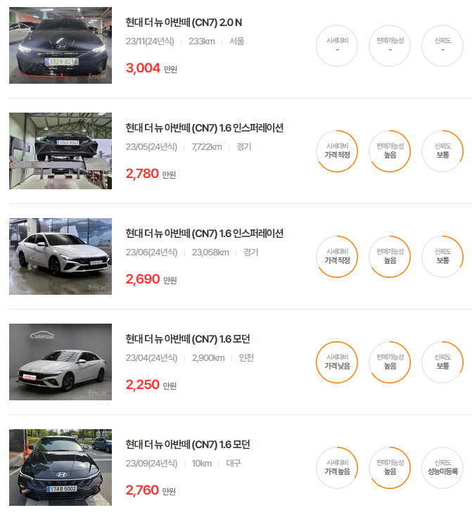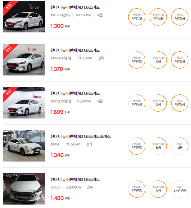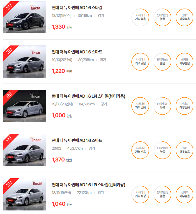 아반떼의 연식별 중고차 가격을 알아보겠습니다.