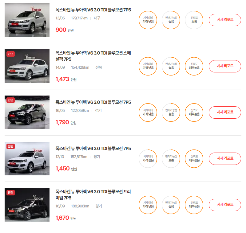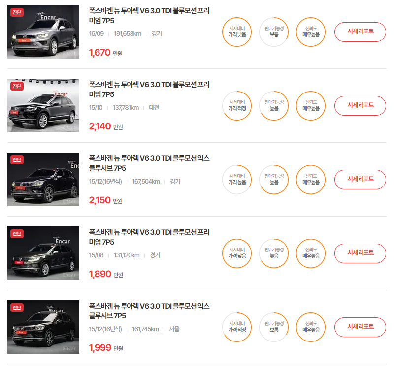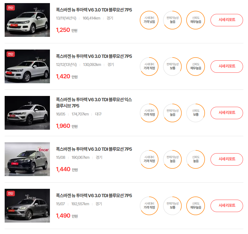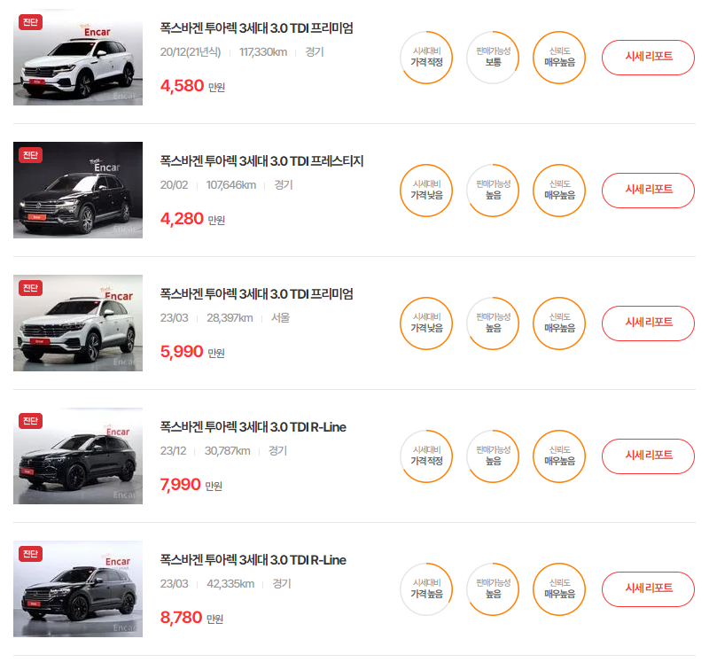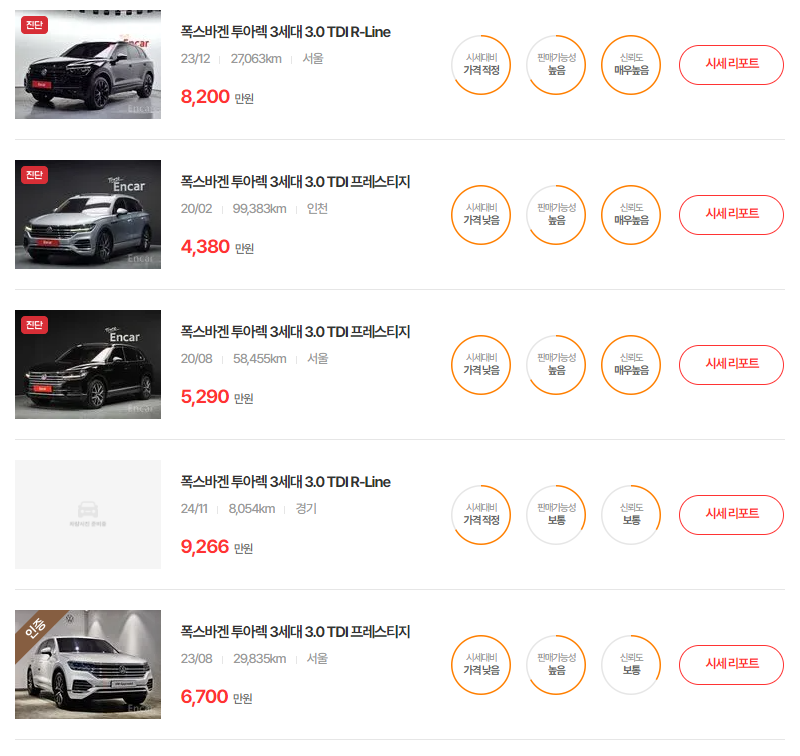 현재 검토 중인 폭스바겐 투아렉과 유사한 차량으로 추천하는 모델을 아래에서 확인해보세요. 각 차량의 시세 정보도 함께 제공되니 비교에 참고하시기 바랍니다.
