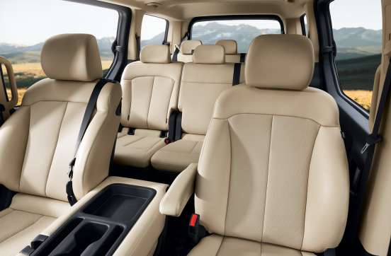 스타리아의 실내는 넉넉한 공간으로 구성되어 있으며, 트림에 따라 다양한 편의 기능을 제공합니다. 특히 적재 공간이 넓어 패밀리카나 비즈니스용으로 적합합니다.