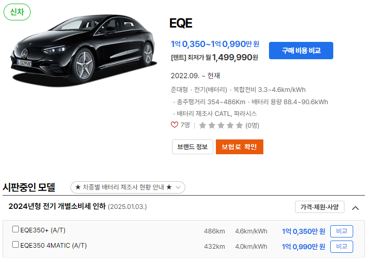- EQE350 4MATIC (A/T): 1억 0,990만 원