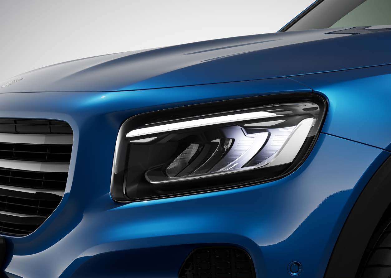 GLB의 외관은 강렬하면서도 세련된 디자인으로, 도로 위에서 눈에 띄게 돋보입니다. 선명한 라인과 스포티한 모습이 특징입니다.