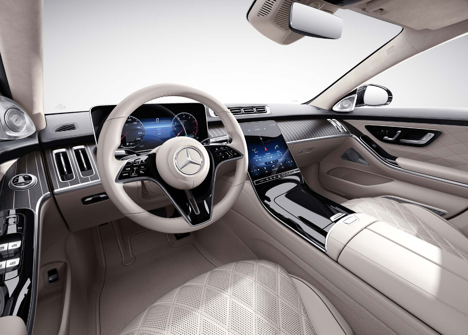 최신 MBUX 시스템이 탑재되어 있어, 음성 인식과 다양한 기능을 손쉽게 사용할 수 있습니다. 대형 터치스크린이 중앙에 배치되어 직관적인 사용자 경험을 제공합니다.