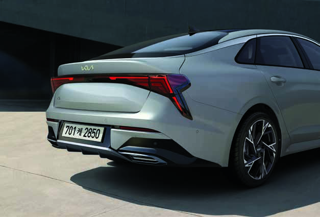 2025 K5는 매끈한 라인과 공격적인 전면 디자인으로, 고급스러우면서도 스포티한 인상을 줍니다.