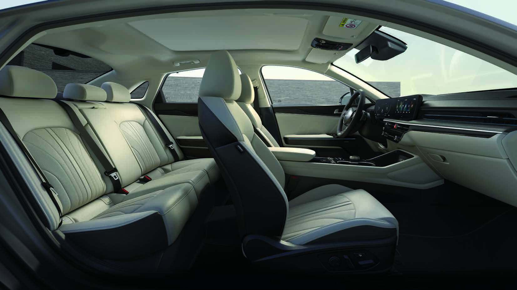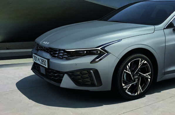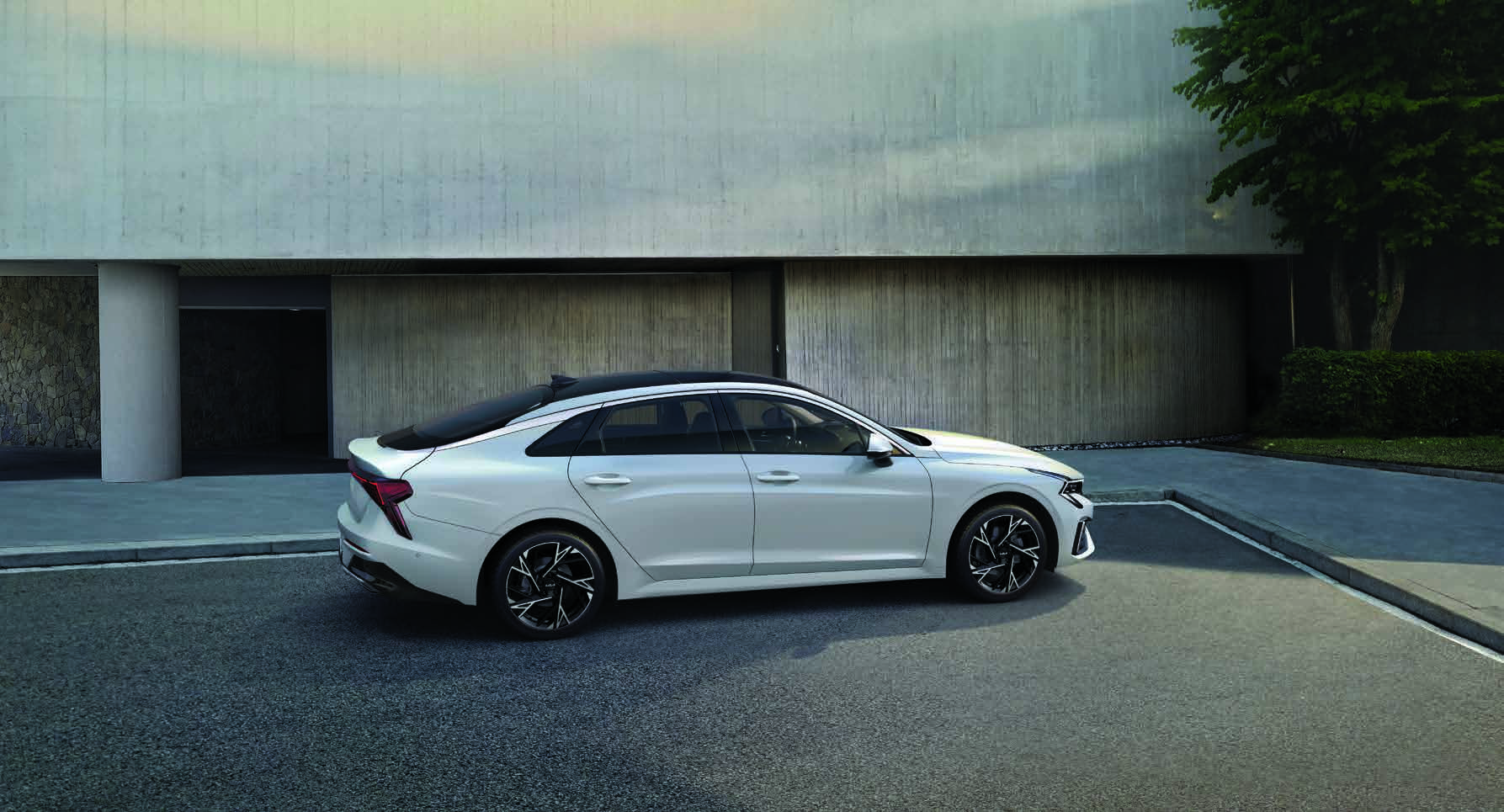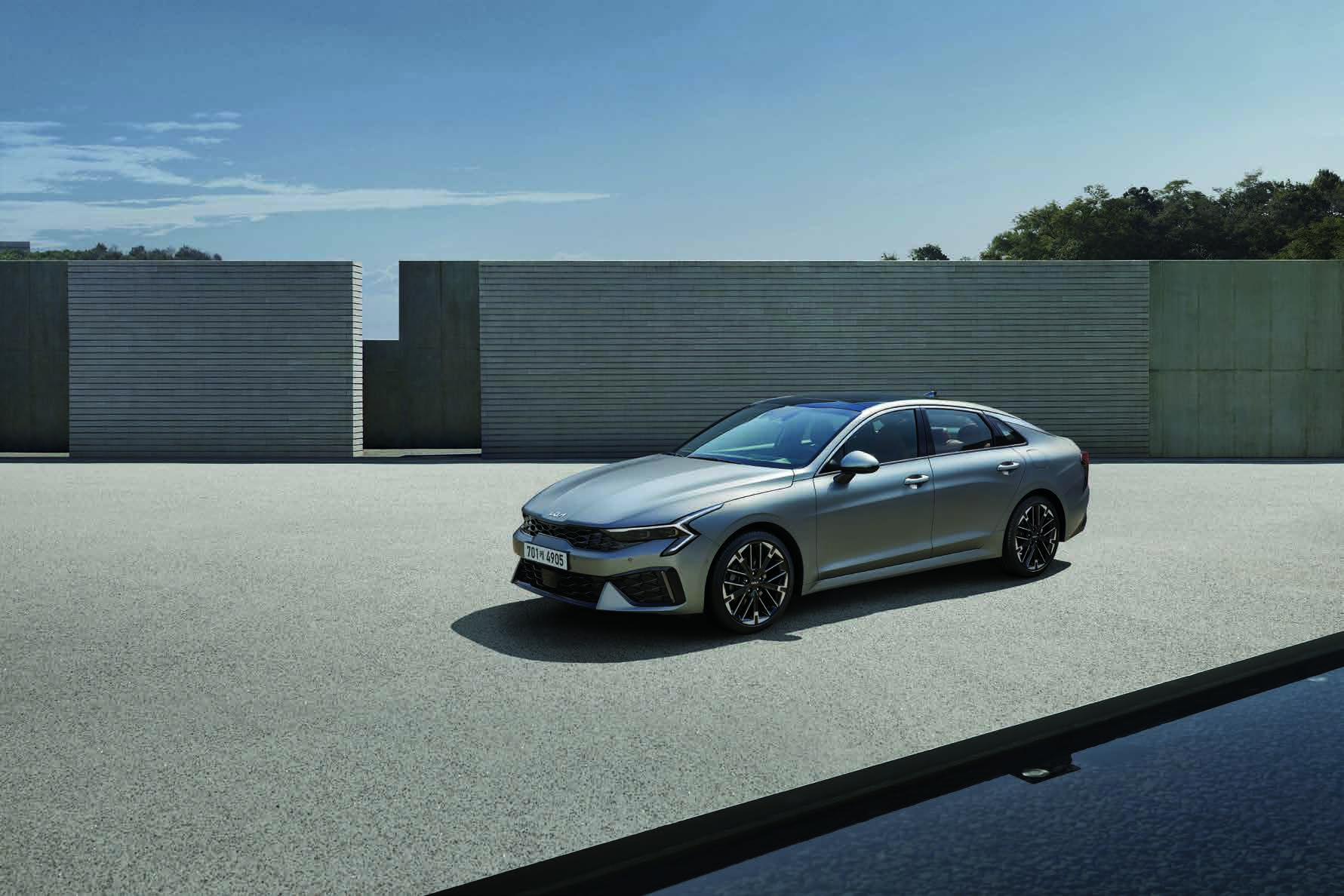 2025 K5는 매끈한 라인과 공격적인 전면 디자인으로, 고급스러우면서도 스포티한 인상을 줍니다.