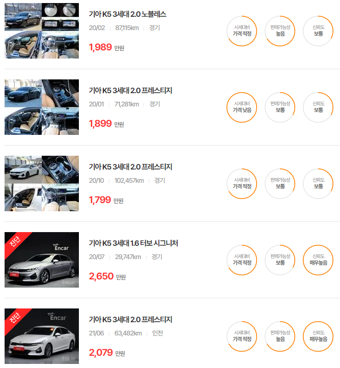 위 링크에서 각 차량의 시세와 비교 포인트를 확인하셔서 중고차 구매에 더욱 현명한 선택하시길 바랍니다.